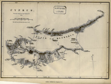 Alte Landkarte von Zypern vom Jahr 1852. |