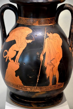 Attischer Keramik, Ödipus löst das Rätsel der Sphinx und befreit Theben,